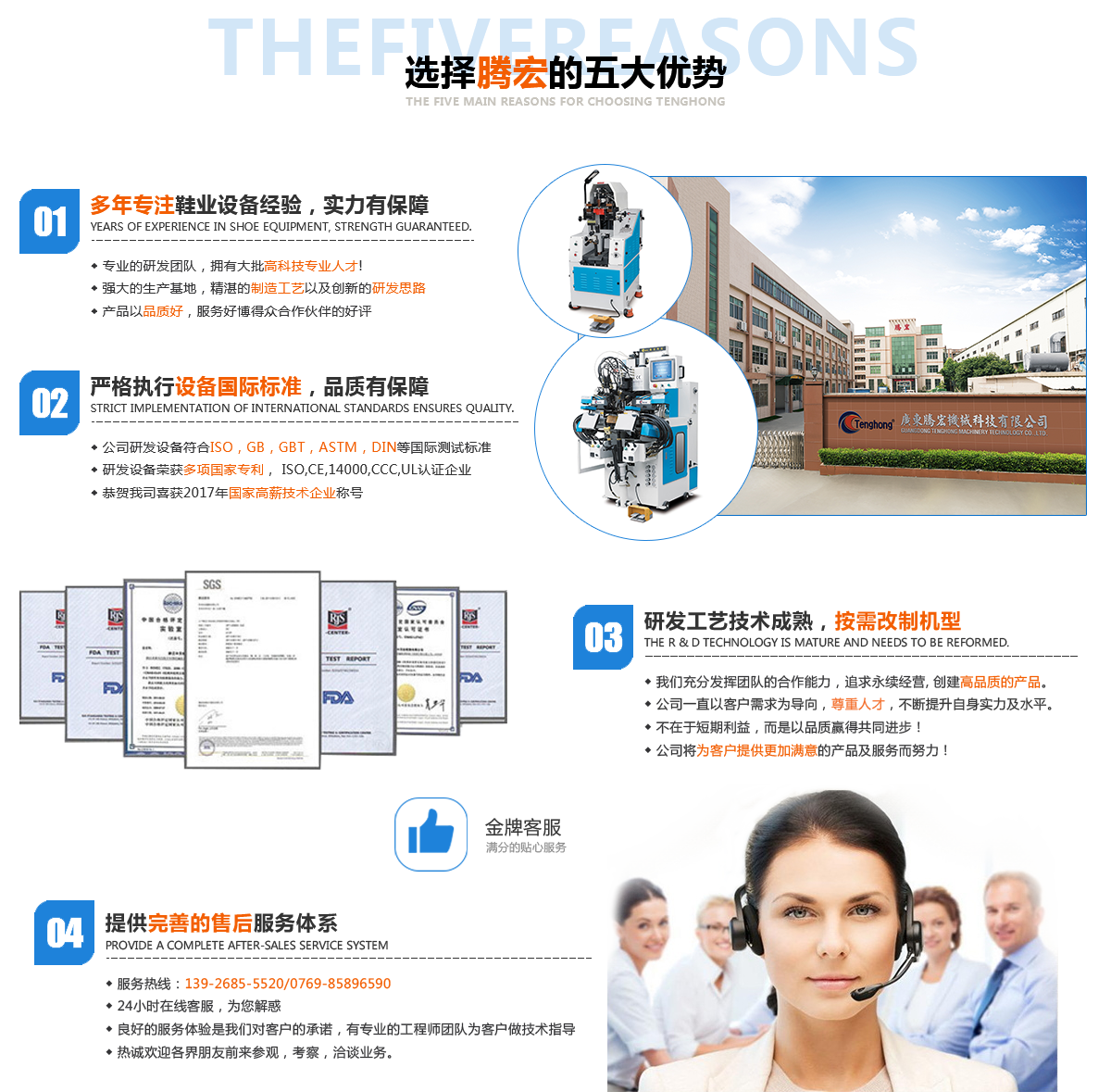 采用圓柱滑軌,上刀動(dòng)作穩(wěn)定。 整型上壓刀采用二段式進(jìn)行,鞋面定型機(jī)操作安全,鞋面中心定位準(zhǔn)確。 可視鞋面大小選擇所需這上刀下壓深度。 可選裝雙彎上刀。